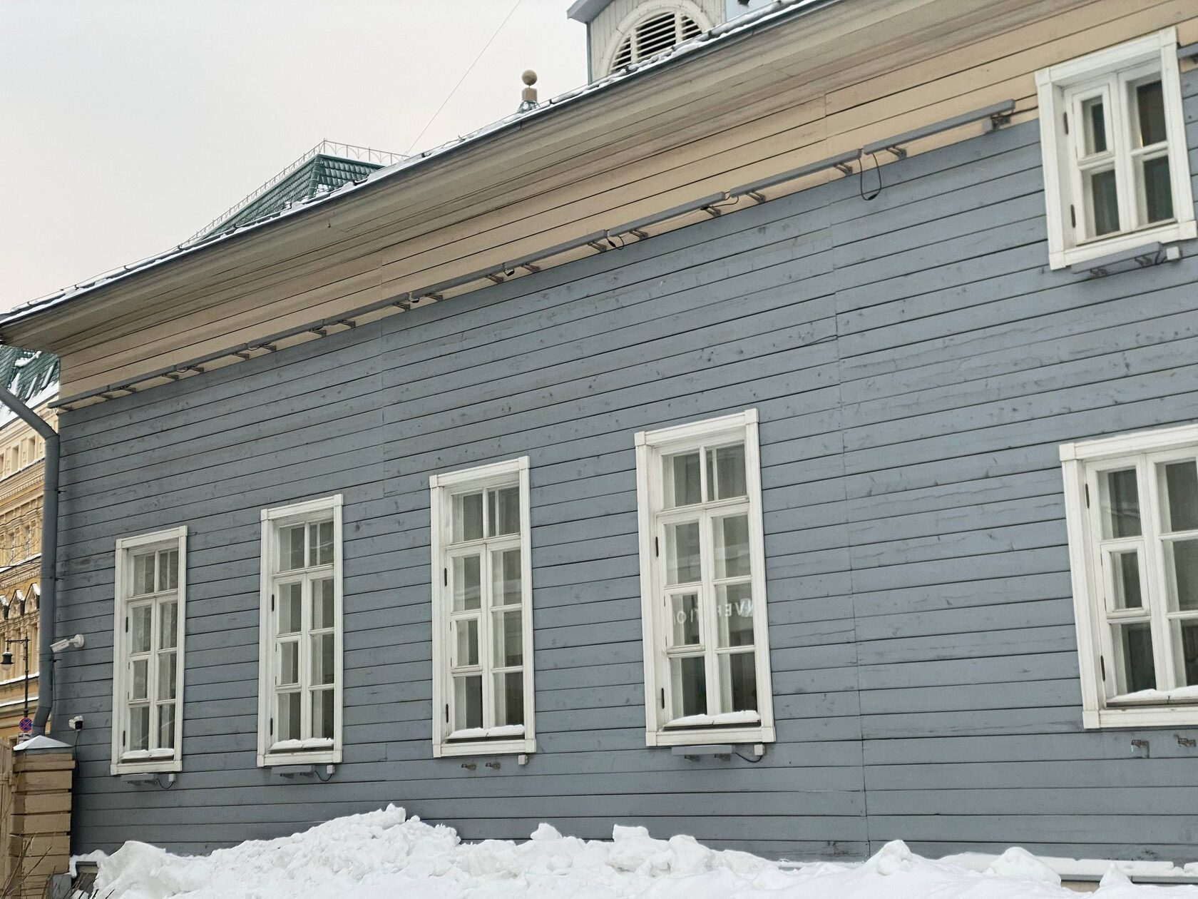 Он был построен в 1819 году на месте здания, сгоревшего в 1812 году во время Отечественной войны. Дом деревянный, на каменном фундаменте, одноэтажный со стороны улицы и с антресольным полуэтажом со стороны двора. Особняк построен в стиле ампир, уличный фасад украшен центральным портиком с шестью белыми колоннами, балконом с балюстрадой и треугольным фронтоном. Дом окрашен в серо-голубой цвет. Кроме главного дома во дворе располагались жилой флигель и хозяйственное строение. Москвичи ласково называют это историческое здание “Дом Муму”.